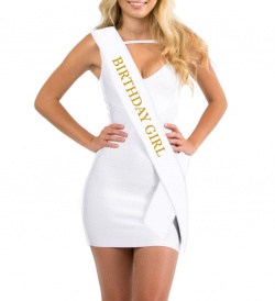 Oživte narozeniny touto stylovou bílou šerpou se zlatým potiskem! Skvělý tip na doplněk pro narozeninové oslavy, večírky nebo překvapení! ?