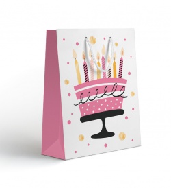 Dárková papírová taška - růžová s dortem